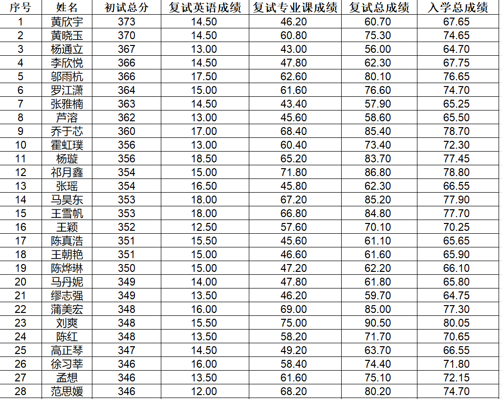 2024年388vip太阳集团硕士研究生调剂复试成绩(生态学)