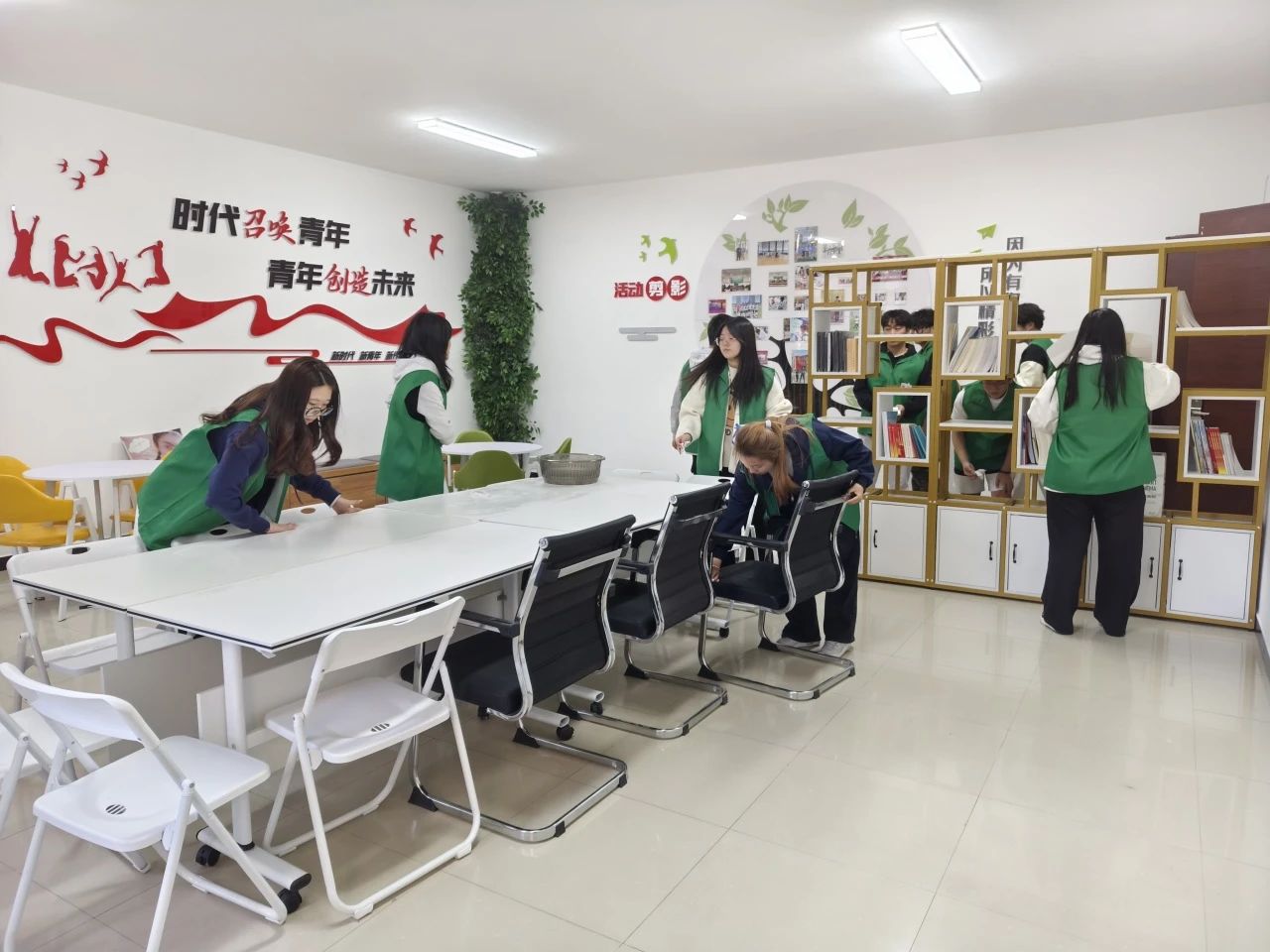志愿者们化身“空间美容师”,用抹布擦拭每一处边角,整理散落的书籍资料,分类回收可再利用物资。践行“零废弃”理念,废弃纸张统一回收,将废物利用最优化,将绿色环保最大化。