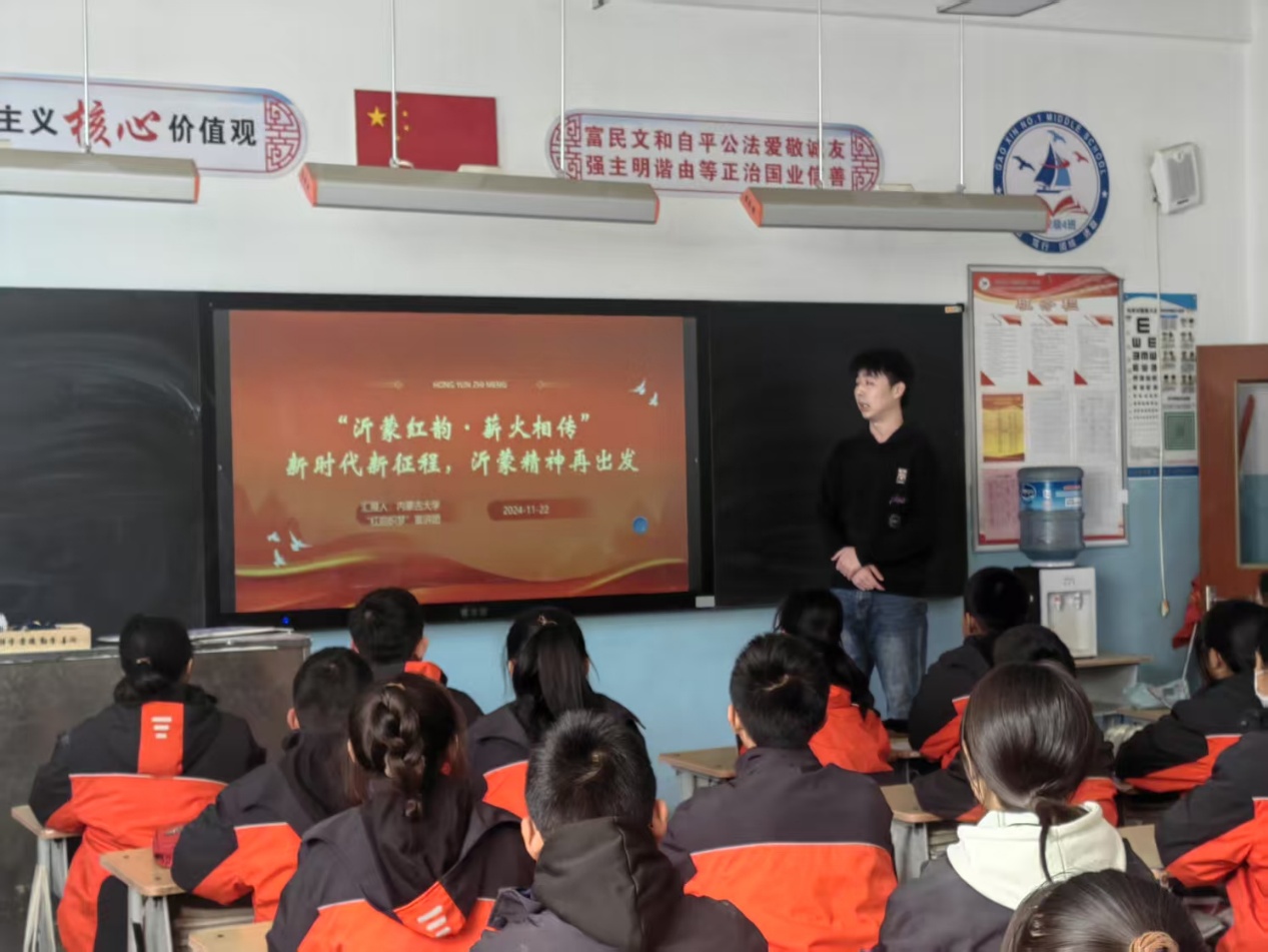 2024年12月12日,内蒙古自治区包头市第四十五中学的校园内,气氛热烈非凡。一场关于“弘扬沂蒙精神,传承红色基因”主题宣讲会在这里成功举办。宣讲会旨在让广大师生能够深入了解沂蒙精神,激发师生内心深处的爱国情怀和奋斗精神。在这个充满希望的校园里,一场红色精神的传递之旅就此拉开帷幕。