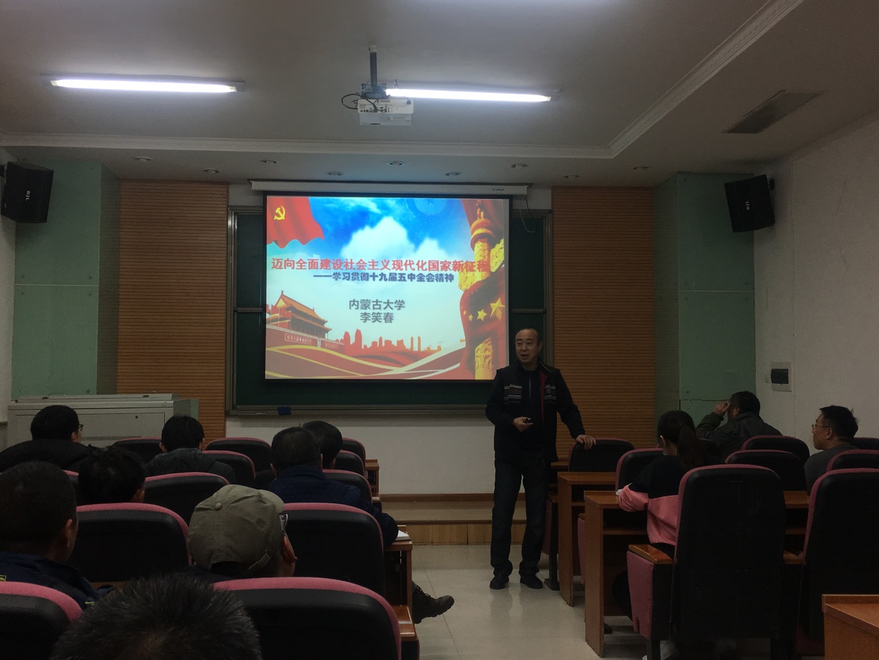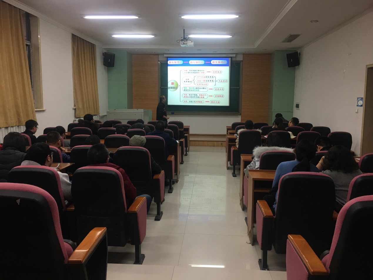 388vip太阳集团于11月25日下午在生物楼101举办学习党的十九届五中全会精神形势政策报告会,学院党委书记李笑春教授为学院全体教工及学生代表做“迈向全面建设社会主义现代化国家新征程”--学习贯彻十九届五中全会精神形势政策报告会,会上李书记从新的发展理念,新的发展阶段,新的发展格局、十四五规划以及2035年社会主义现代化远景目标等方面出发,宣传讲授了党的十九届五中全会精神。