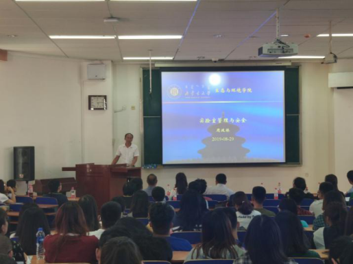 随后周延林副院长围绕着实验室管理与安全给2019级全体博、硕研究生讲述了生动的一课。周延林副院长首先给研究生们展示了近期发生在各大高校实验室安全事故案例,让2019级全体博、硕研究生深刻地体会到了实验室安全的重要性;然后他带领2019级全体博、硕研究生详细地认识了实验室中的危险源;最后他与在座研究生共同学习了如何防范实验室安全事故。