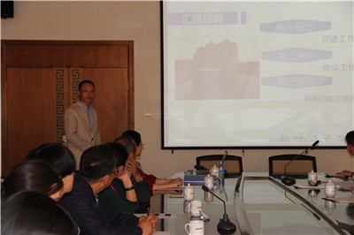 王立新副院长向专家组进行了工作汇报。汇报主要分三个部分:学院迎评促建以来所做的各项具体工作;紧密围绕审核评估范围,按照定位与目标、师资队伍、教学资源、培养过程、学生发展、质量保证和教学特色等七个审核项目总结学院教学工作;围绕前6个审核项目,提出存在的问题和整改措施。