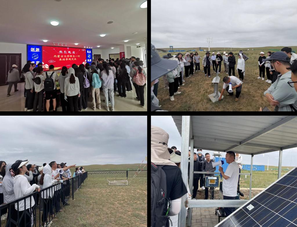 2023年7月10日,学生们来到了实习的第一站—阴山北麓草原生态水文国家野外科学观测研究站,它位于达尔罕茂明安联合旗,是包头市第一个国家级野外科研观测研究站。水利部牧区水利科学研究所高级工程师高天明老师为学生们进行了生动风趣的讲解,带领师生一行参观了水肥一体化滴灌设备、风洞仪、土壤蒸渗仪等设备,并进行现场教学,指导学生们分辨希拉穆仁草原上的不同植物物种。