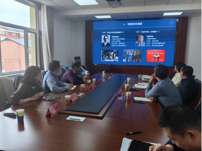 乌兰察布市生态环境局梁志华局长对我院一行的到访表示热烈欢迎,并介绍了乌兰察布市生态环境建设的进展。李永宏院长介绍了我院的发展历史以及在科学研究、人才培养、社会服务等方面的工作。随后,双方围绕岱海水质改善、荒漠化防治、大气污染治理、生物多样性保护与利用等共同关注的生态环境问题开展了广泛交流,并深入探讨了共建“农牧交错带复合生态系统野外观测研究站”的事宜。