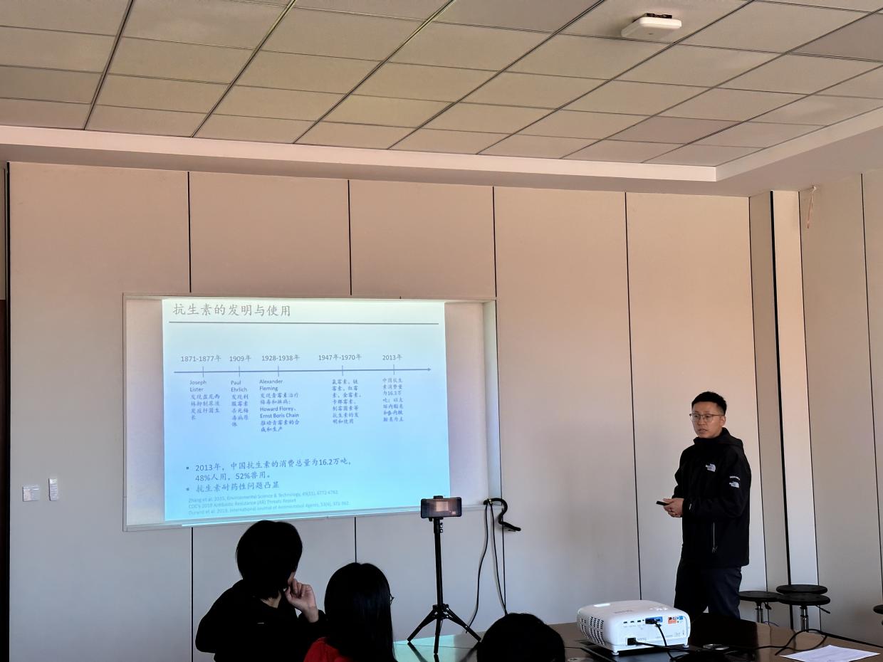 2023年11月23日下午,我院“骏马计划”研究员孙月鹏老师为我院师生作了题为“抗生素耐药性/抗性基因在环境中的传播、控制和归趋”的专题报告。抗生素耐药性因其对全球卫生、食品和环境的威胁,是目前农业、医学、公共健康、环境保护等领域迫切关注的研究热点。畜禽粪便施肥加速了抗性基因在土壤环境中的扩散和传播,长期施用粪肥可能造成抗性基因在土壤中积累,增加植物吸收抗性基因的生态风险,因此,有必要深入研究畜禽粪便抗性基因在土壤系统的命运和传播。孙月鹏老师着重介绍了畜禽粪便抗性基因在土壤-植物系统的传播和控制,主要从以下两方面展开:(1)基于宏基因组学和机器学习方法,探明抗性基因在土壤和植物系统的传播路径;(2)探讨了畜禽粪便堆肥过程中抗性基因的削减机制和风险控制。此外,报告还介绍了如何利用高温热水解-厌氧消化技术控制市政污泥抗性基因的传播;利用机器学习、随机森林模型,锚定污水厂活性污泥抗性基因的“普适性”宿主;阐明污水厂出水的营养物浓度如何影响接受水体细菌之间的接合转移频率;解析污水中胞外囊泡诺如病毒浓度的季节性变化规律。互动环节,孙月鹏老师与在场师生就抗性基因的分析方法、机器学习方法的应用、植物从遗传角度传播抗性基因的可能性、病毒形态对环境工程系统的挑战等热点问题进行了深入探讨和交流。