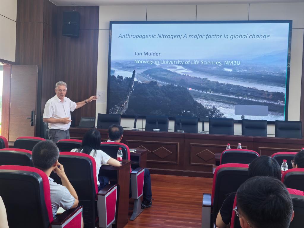 Jan Mulder教授是国际知名土壤学家,长期开展森林、草地和农业生态系统碳、氮和金属等元素的生物地球化学循环研究。报告“人为源氮—全球变化的重要因子”阐述了人为源氮对全球氮循环的改变及其对人类社会的威胁,并以中国西南森林生态系统为例,探讨了N排放和输入的相关问题,介绍了N通量测定方法进展。